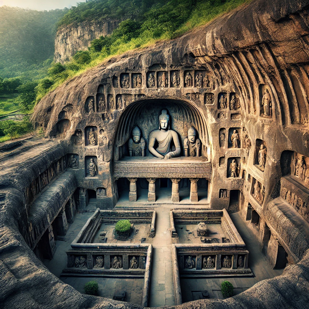 - Chaitya Grihas (Prayer Halls): Large halls with stupas, used for meditation and worship.
